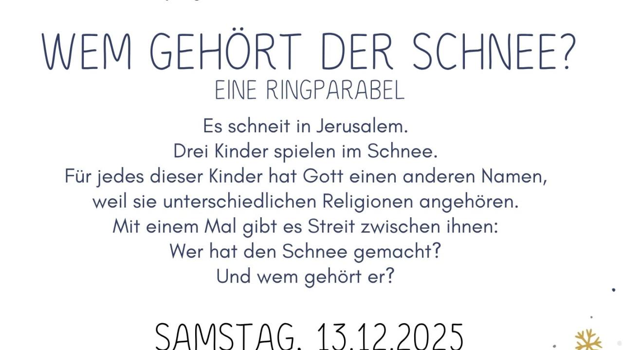 Gemeinsam mit der Stadtkapelle Radstadt laden wir recht herzlich zur musikalischen Büchermaus zum Bilderbuch "Wem gehört der Schnee?" (von Antoine Schneider, erschienen 2019 im NordSüd-Verlag) ein. Durch die Geschichte von drei Kindern in Jerusalem, die versuchen herauszufinden, welcher Gott den Schnee gemacht hat, tragen uns die jungen Leserinnen der Stadtbibliothek und die Jungmusiker:innenn der Stadtkapelle.